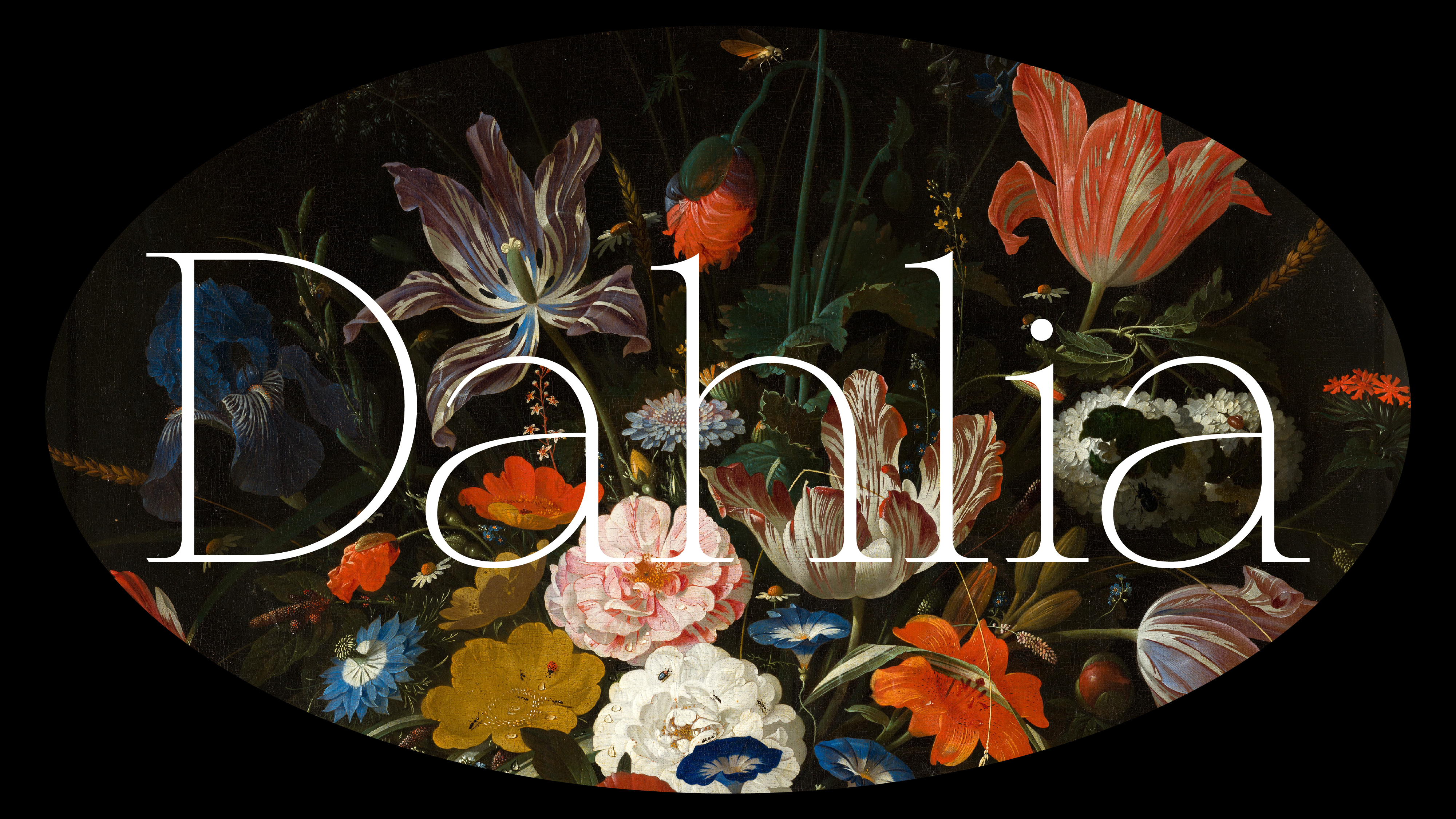 Constructing a serif typeface with 192 characters reflecting the anatomy of a dahlia.